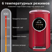 Термопот Tesler TP-5050 не только кипятит воду, но и позволяет нагревать её до одной из шести заранее установленных температур: от 45 °C до 95 °C. Устройство стабильно поддерживает выбранный температурный режим, что удобно для приготовления разных видов напитков - от зелёного чая до детских смесей.