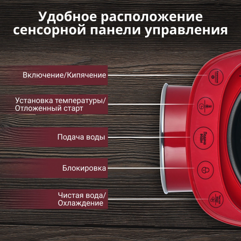 Функция быстрого охлаждения позволяет оперативно снизить температуру воды до нужного уровня сразу после кипячения. Все детали, соприкасающиеся с водой, выполнены из безопасных и экологичных материалов. Внутренняя колба из нержавеющей стали имеет специальное покрытие, предотвращающее образование накипи и коррозии, что особенно важно при использовании обычной водопроводной воды. Уход за прибором упрощается благодаря съёмной крышке.