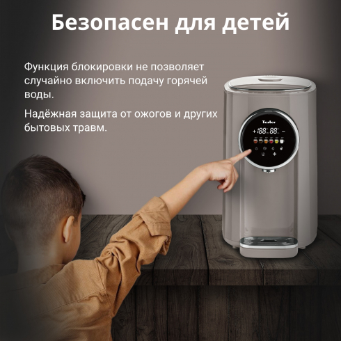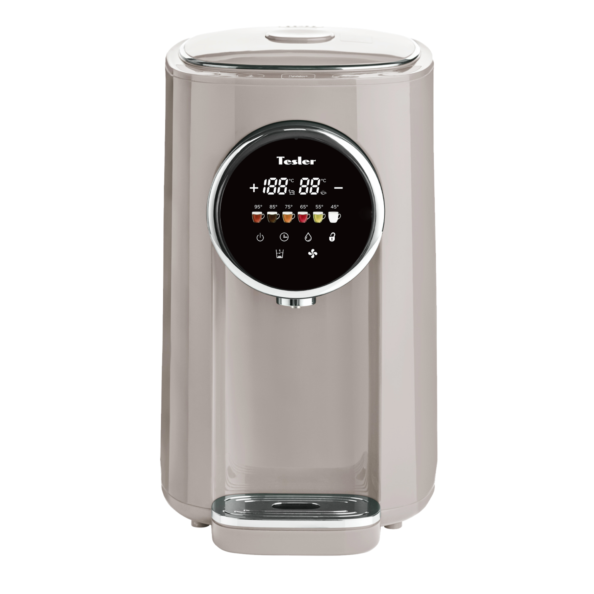 Термопот Tesler TP-5050 не только кипятит воду, но и позволяет нагревать её до одной из шести заранее установленных температур: от 45 °C до 95 °C. Устройство стабильно поддерживает выбранный температурный режим, что удобно для приготовления разных видов напитков - от зелёного чая до детских смесей.