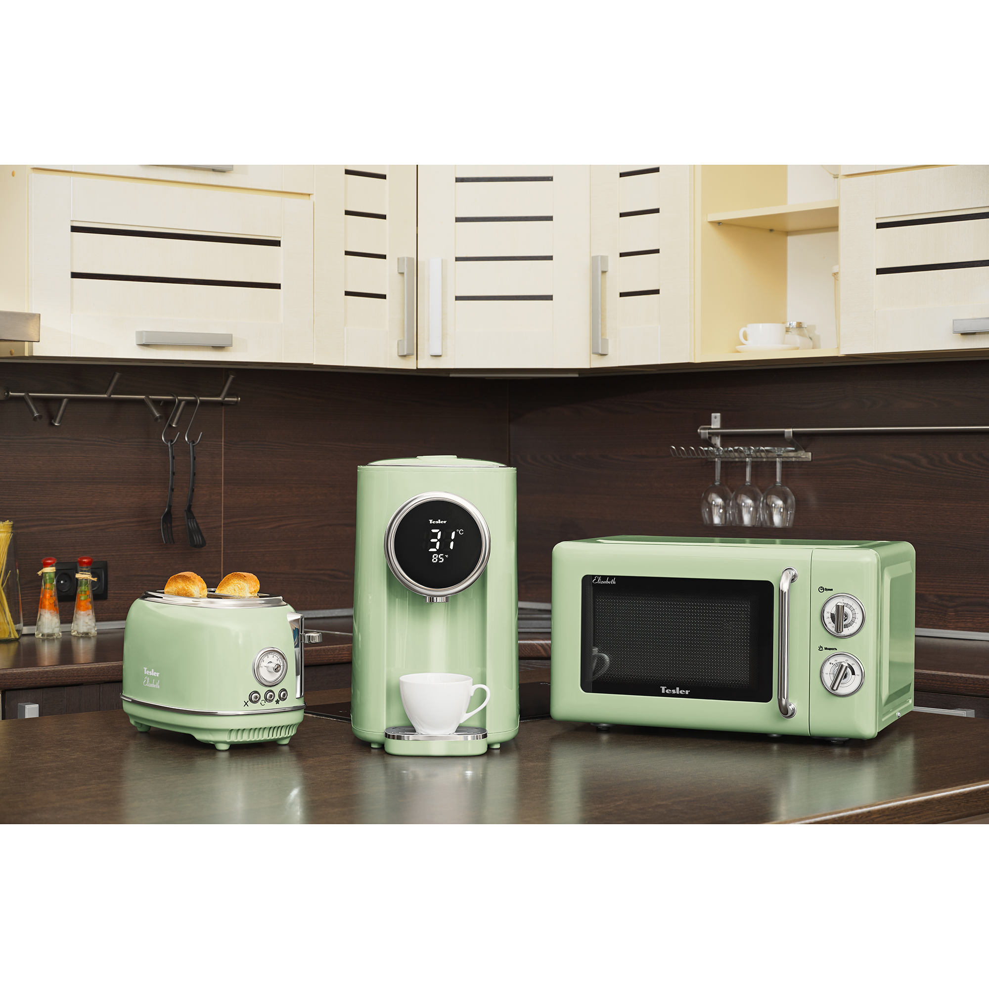 В комплект кухонной техники Tesler Margherita входят 4 устройства: СВЧ-печь, чайник, тостер и термопот.