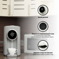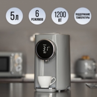 Объем воды 5 литров закипает быстро благодаря высокой мощности в 1200Вт. Информативный дисплей покажет вам не только заданный режим, но и температуру в режиме реального времени. Когда вода внутри колбы будет заканчиваться – термопот сам оповестит вас с помощью сигнала. При необходимости подачу воды можно заблокировать.