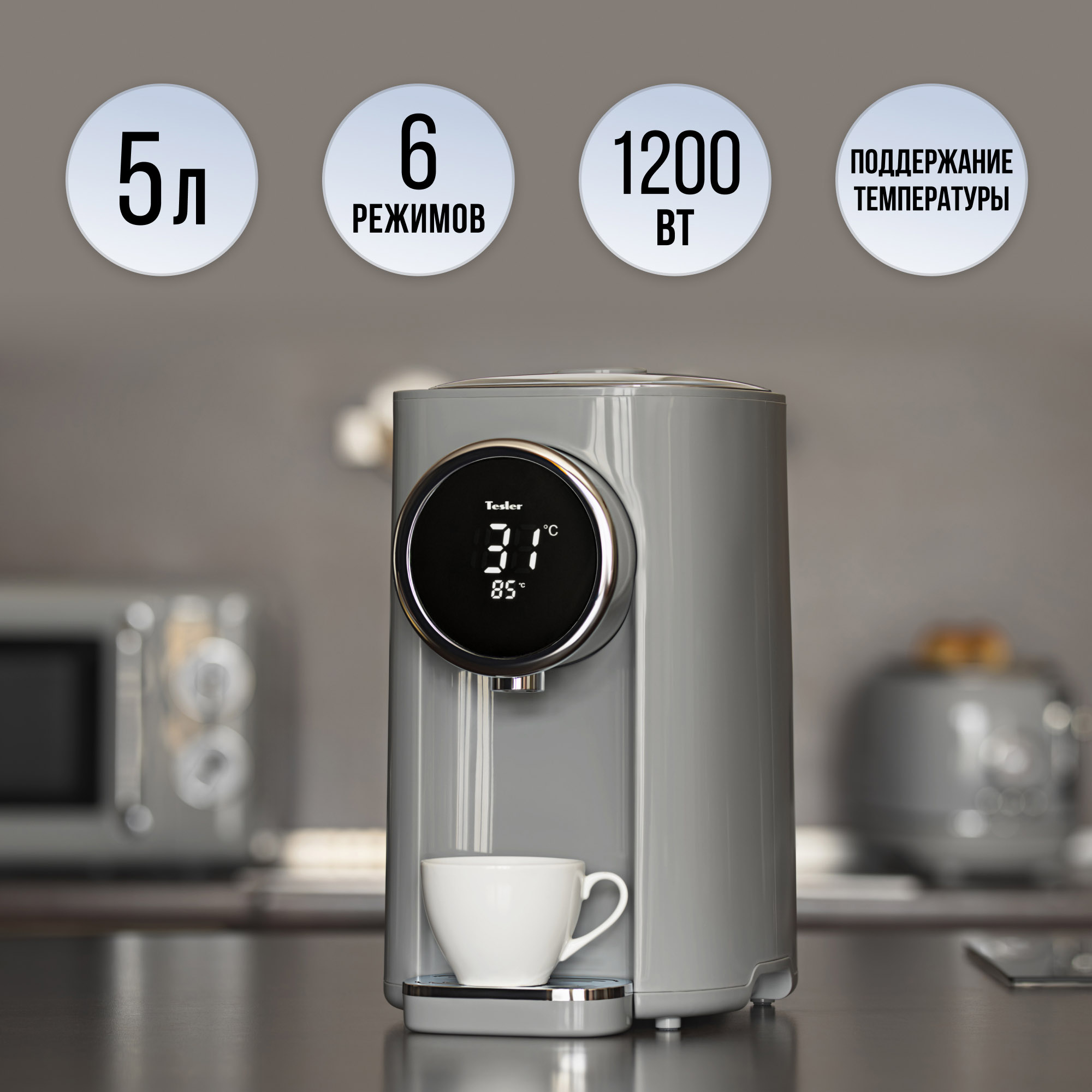 • 6 температурных режимов, автоматическое кипячение и поддержание температуры.