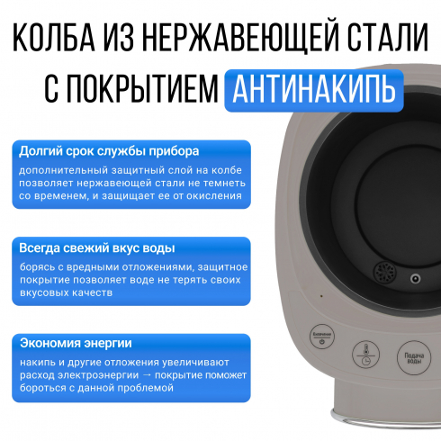 Предусмотрена функция быстрого охлаждения воды после кипячения до установленного значения.