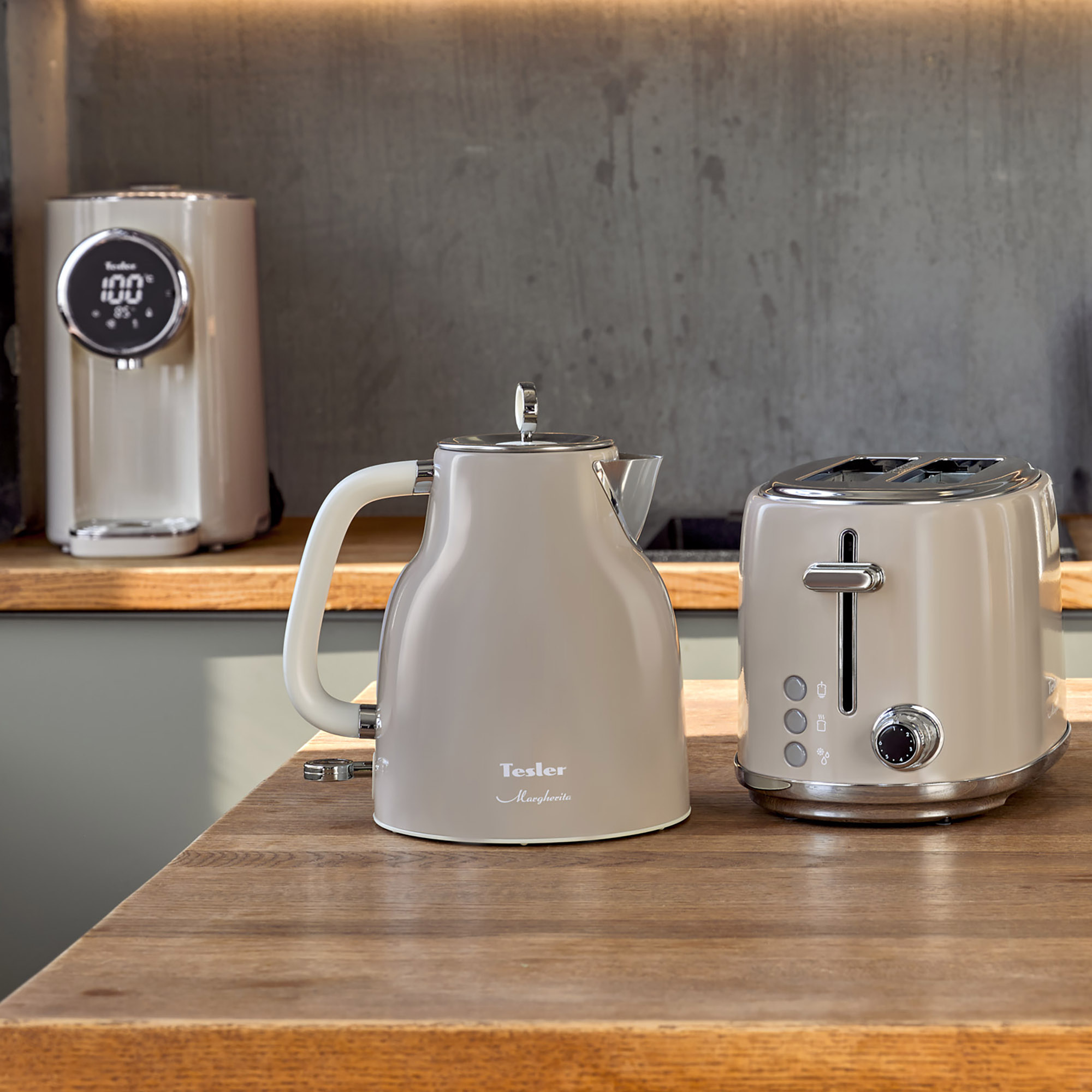 Устройство является частью коллекции бытовой техники Margherita. Комплект Margherita от Tesler включает в себя в себя кофемашинукапучинатордвухкамерный холодильникчайник объёмом 1,7 л, микроволновую печь с электронным управлением и тостер с двумя слотами для хлеба.
