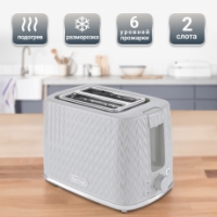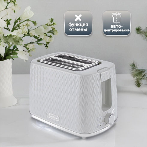 Хрустящие гренки с чесноком для большой компании, или ароматные тосты к завтраку — это просто и быстро! Тостер Tesler TT-204 оснащен двумя отсеками для хлеба, поэтому процесс приготовления не займет много времени. Элегантный корпус с геометрическим узором дополнен хромированными акцентами, благодаря чему тостер выигрышно смотрится на любой столешнице.