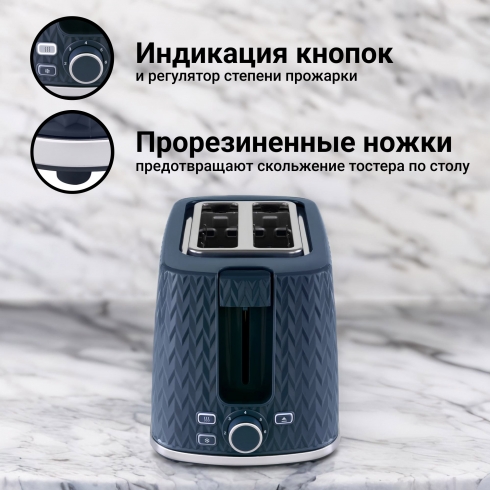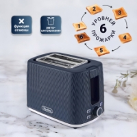 Тостер оснащён поворотным регулятором, который позволит установить предпочитаемую степень прожарки.