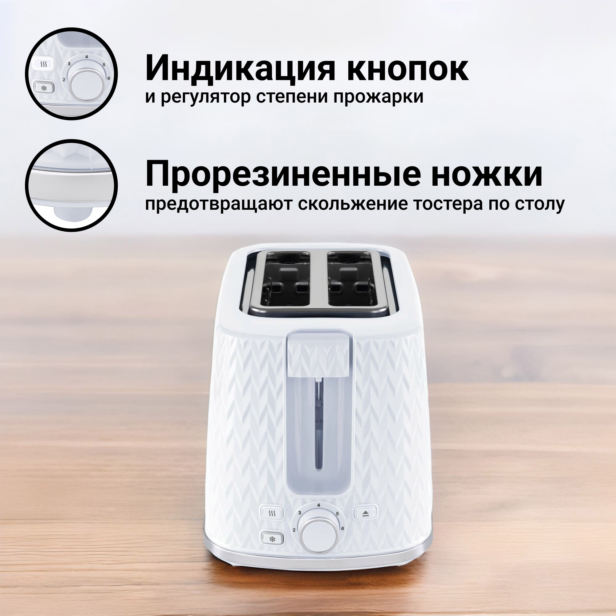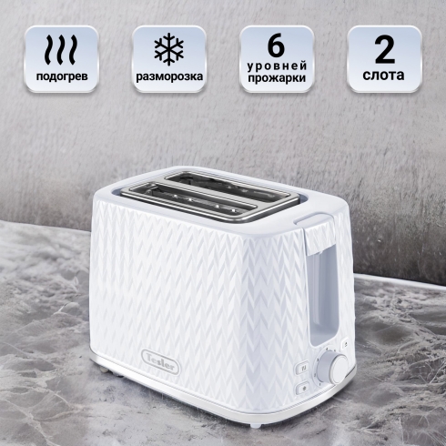 Хрустящие гренки с чесноком для большой компании, или ароматные тосты к завтраку — это просто и быстро! Тостер Tesler TT-204 оснащен двумя отсеками для хлеба, поэтому процесс приготовления не займет много времени. Элегантный корпус с геометрическим узором дополнен хромированными акцентами, благодаря чему тостер выигрышно смотрится на любой столешнице.
