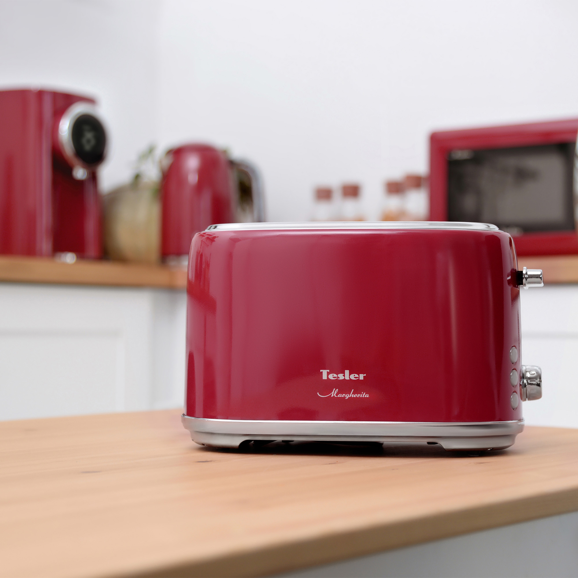 Любите побаловать себя вкусным и полезным завтраком? Тогда обратите внимание на тостер TESLER TT-255 из линейки кухонных приборов Margherita. Он оснащен двумя отсеками для хлеба, поэтому процесс приготовления не займет много времени. А автоматическое центрирование хлеба обеспечит его равномерную прожарку.