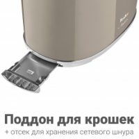 Для хранения сетевого шнура предусмотрен специальный отсек, а прорезиненные ножки предотвратят скольжение. В случае перегрева тостер автоматически отключится, что защитит его от преждевременной поломки. Нержавеющая сталь, из которой выполнено устройство, гарантирует долгий срок службы.