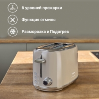 Потребляемой мощности (900Вт) и 6 уровней поджаривания достаточно для того, чтобы сделать тосты, полностью соответствующими вашим предпочтениям. Но даже если вы ошиблись в выставленном режиме, то выручит кнопка отмены. С помощью прибора можно также подогреть или разморозить хлебобулочные изделия.
