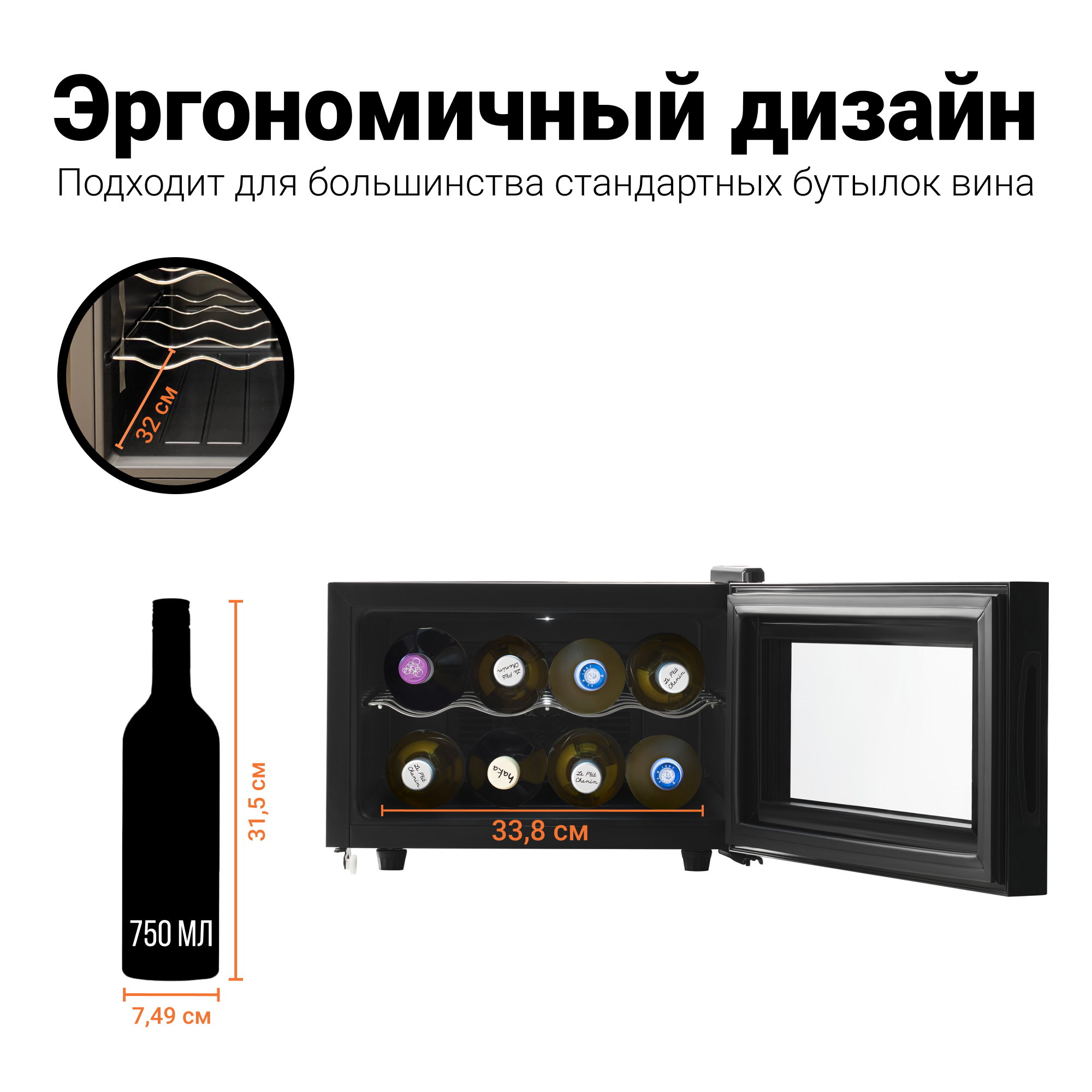 Данная модель позволяет хранить до 8 бутылок.