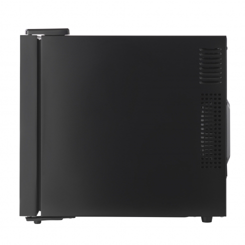 Дверца из двухслойного закалённого стекла с зеркальной поверхностью защитит напитки от воздействия света. При этом стекло позволяет увидеть содержимое, не открывая дверцу. Для этого достаточно просто включить подсветку. Бесшовный уплотнитель дверцы изолирует содержимое шкафа от воздействия окружающей среды. В качестве термоизоляции корпуса используется полиуретановая пена, которая не содержит вредных веществ.