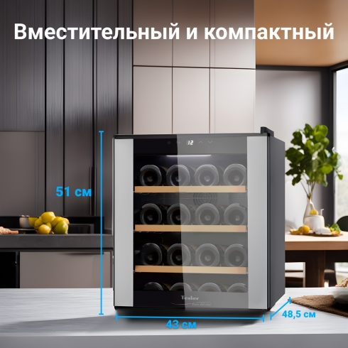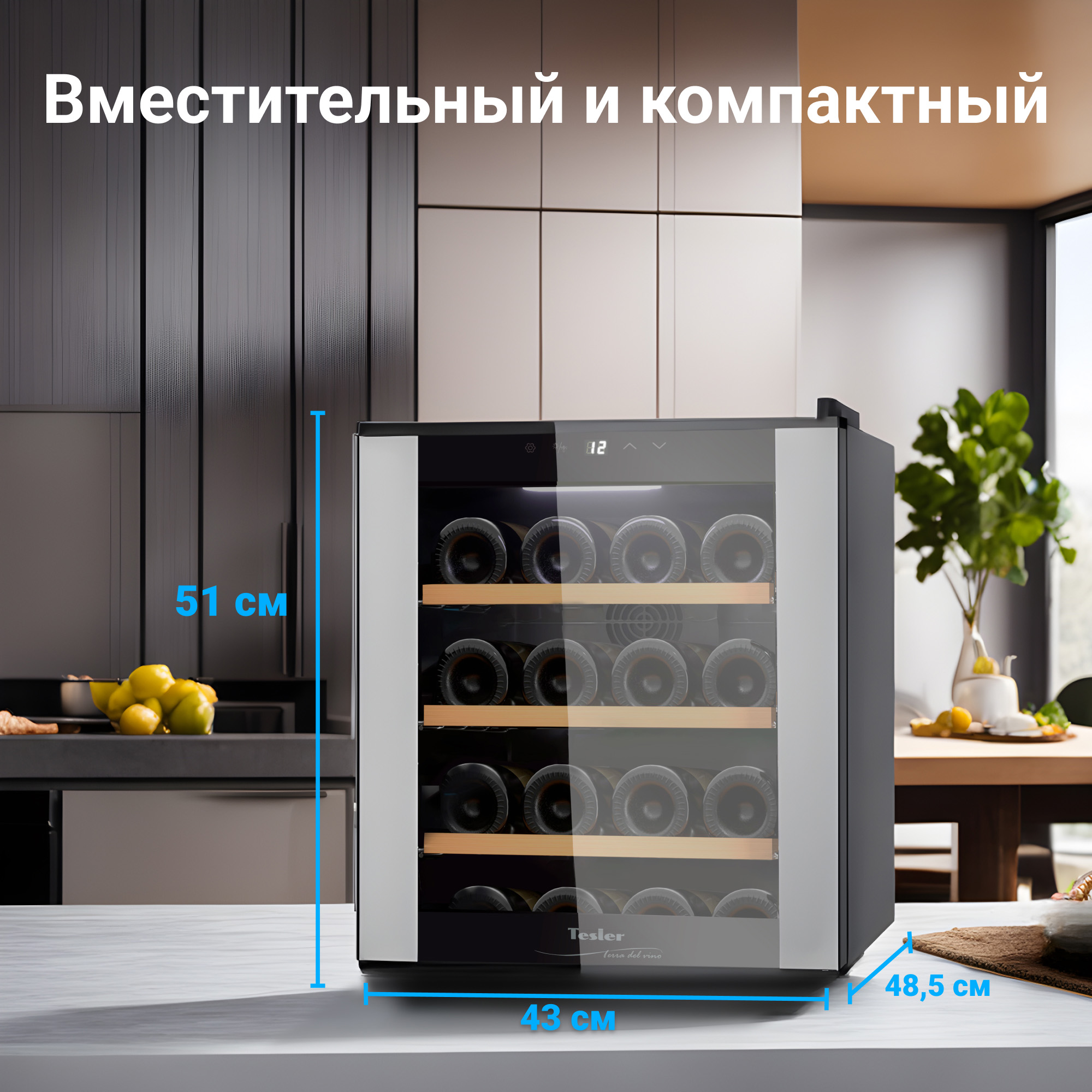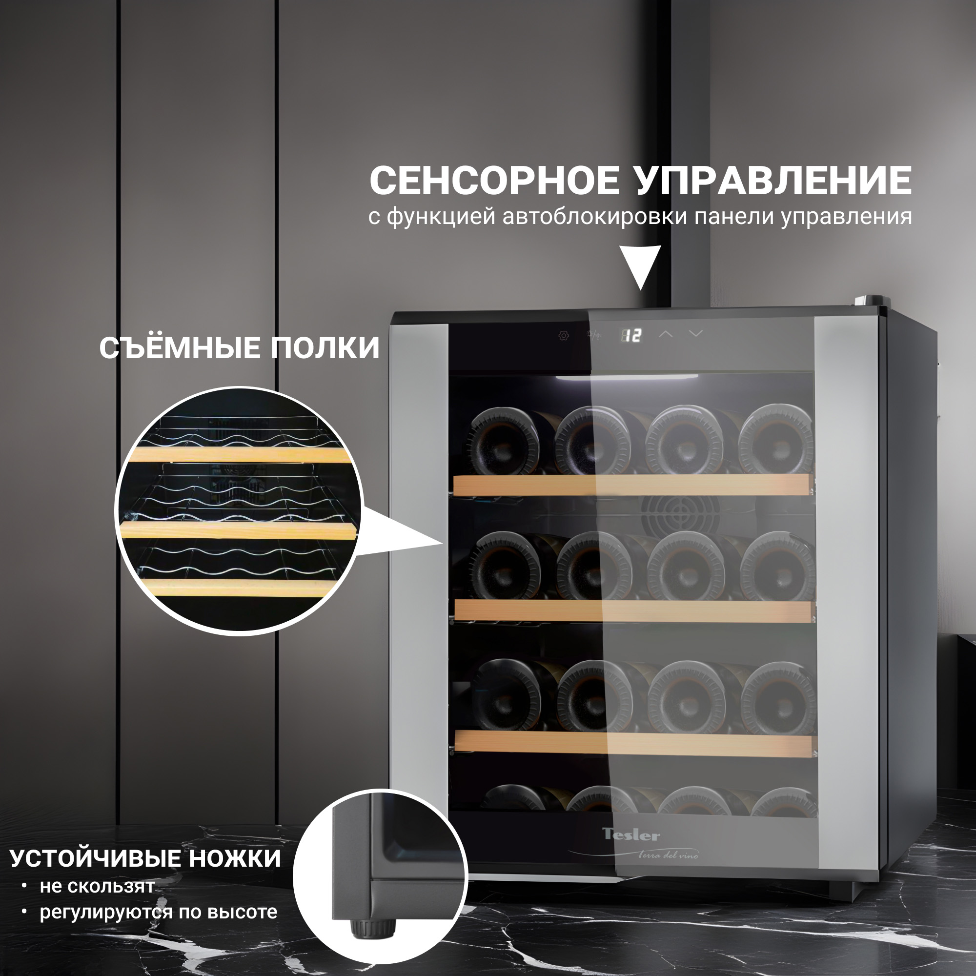 Благодаря элегантному дизайну и небольшим габаритам отдельностоящий винный шкаф Tesler WCV-160 легко впишется в интерьер городской квартиры, загородного дома или офиса. Разместить его можно на полу, столе или столешнице.