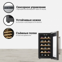 Благодаря строгому и одновременно элегантному дизайну винный шкаф Tesler WCV-182 легко впишется в интерьер городской квартиры, загородного дома или офиса.
