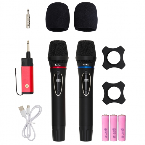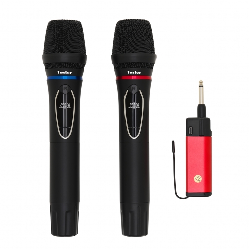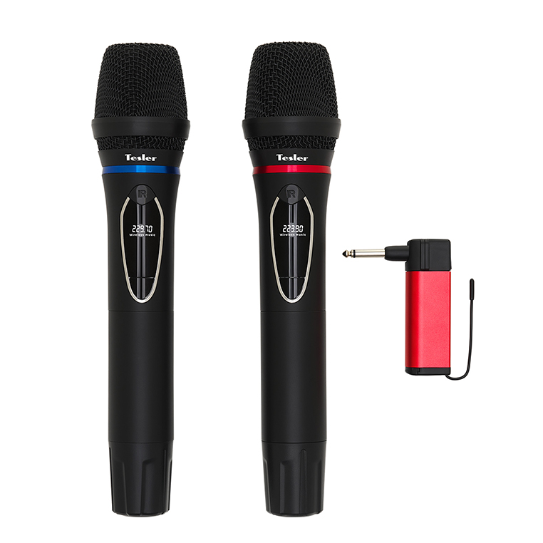 Комплект из двух динамических микрофонов и приёмника с разъемом Jack (6,3-3,5 мм) Tesler WMS-700 обладает чистым, живым звуком, и подходит для любых целей. С ней вы сможете провести детский утренник или взрослую конференцию, спеть все хиты любимого исполнителя на одном дыхании, имея при этом полную свободу перемещения за счет отсутствия проводов.